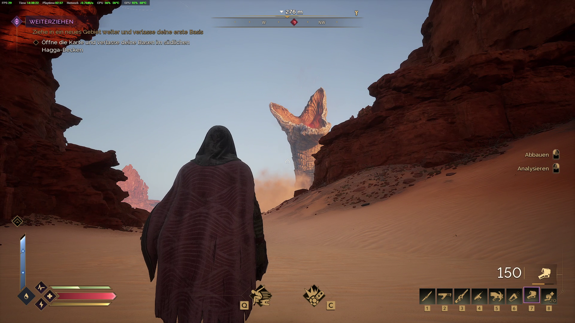 Wir wären echt gern noch weiter reingetaucht – ehrlich! Aber Dune: Awakening ist ein ziemliches Zeitmonster. Das Endgame? Haben wir (noch) nicht gesehen, weil vorher einfach so viel los ist: Crafting hier, Fraktionen da, plötzlich ist ein Wurm hinter dir her.