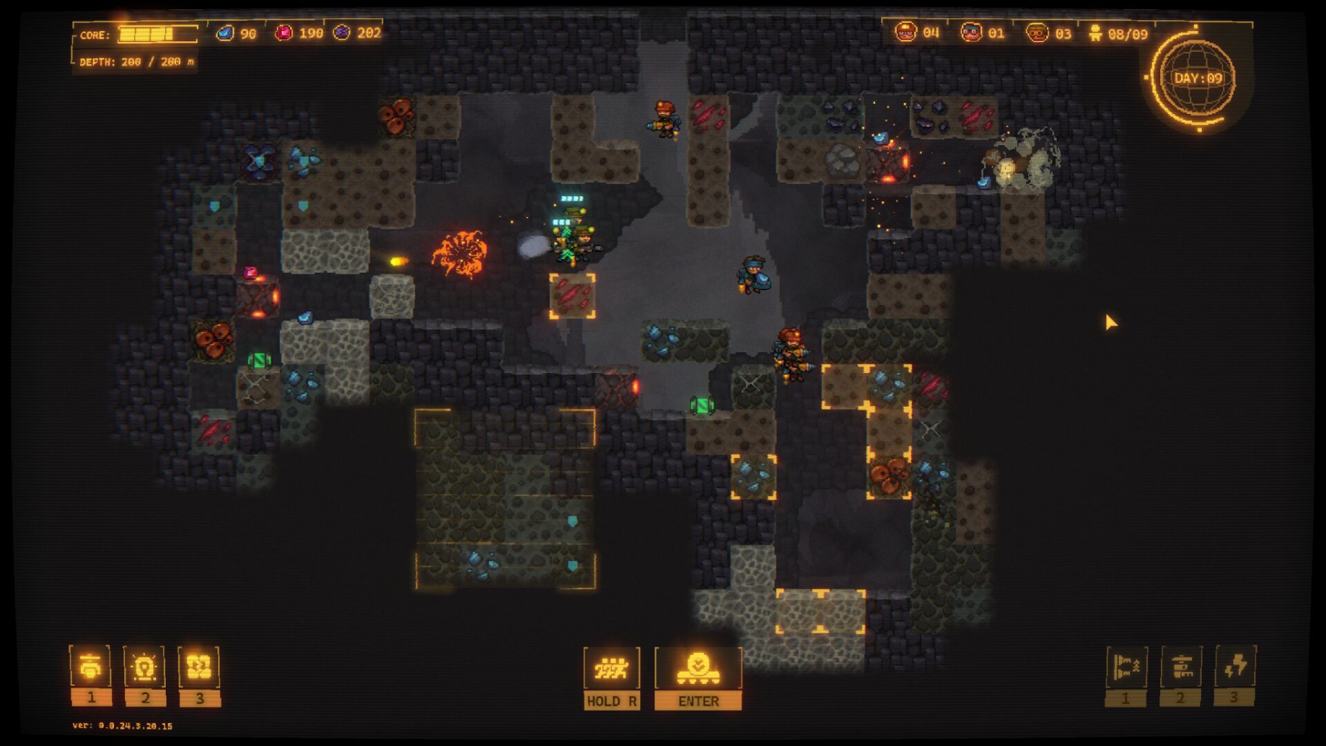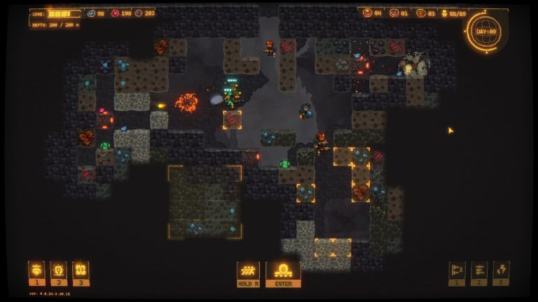 Du leitest eine Bohrmission mit dem Ziel, eine bestimmte Tiefe zu erreichen. Während des Bohrens sammelst du verschiedene Währungen, die du für Waffen-Upgrades und Skills benötigst. Die Waffen sind wichtig, um nachts Feinde abzuwehren, während Skills dafür sorgen, dass du schneller und tiefer bohren kannst. Hier entsteht ein ständiger Balanceakt: Soll ich mich defensiv wappnen oder alles ins Vorankommen investieren?
