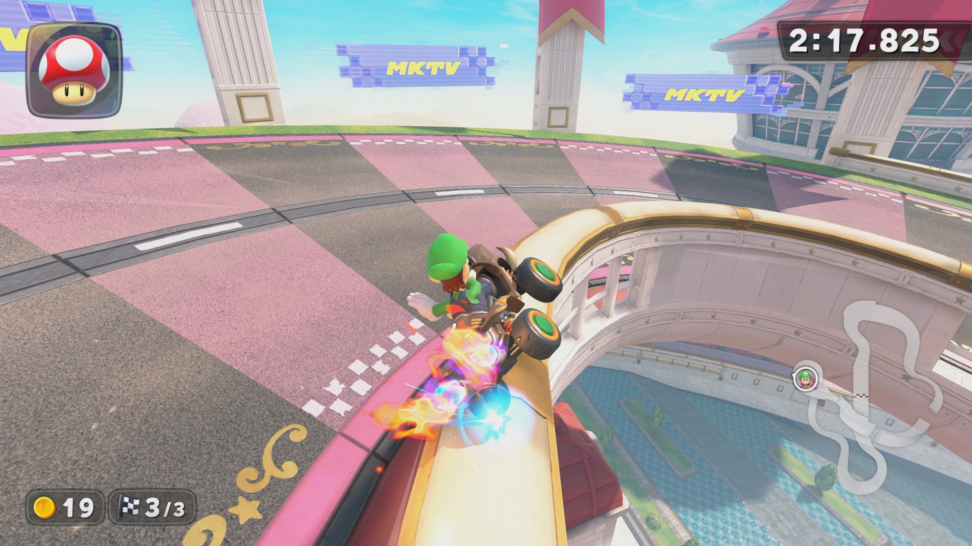 Kurios wirkt das neue Rewind-Feature im Solo-Modus. Während der eigene Kart zurückgesetzt wird, fahren die Gegner unbeirrt weiter — sinnvoll allenfalls zum Üben im Freien Fahren.