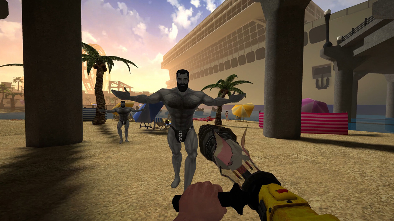 Denn sobald man den ersten Schritt in dieses sonnige Paradies setzt, bricht die Hölle los. Die Resort-Kulisse verwandelt sich in eine groteske Spielwiese für durchgeknallte Gegner, die so gar nichts mit entspannter Urlaubsstimmung am Hut haben. Zwischen Cocktailbars und Hotelanlagen lauern neue Feindtypen, die aussehen, als wären sie aus einem Alptraum nach einer viel zu langen All-inclusive-Nacht entsprungen.